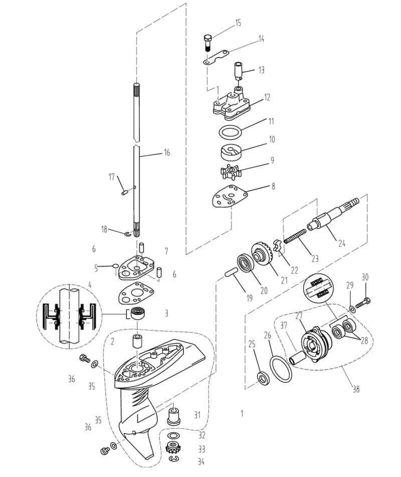 Parsun F2.6 lower casing and drive 1