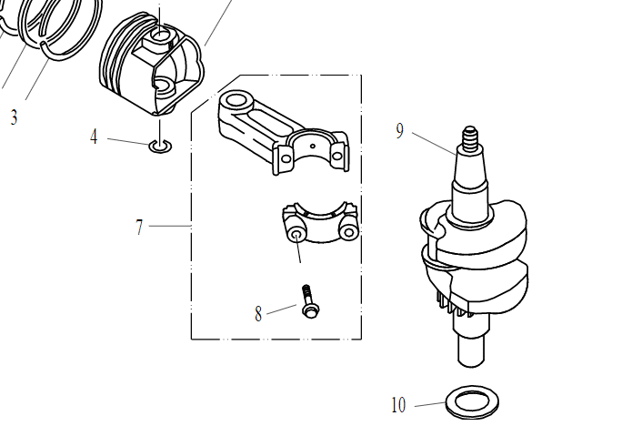 Parsun F2.6 crankshaft and piston